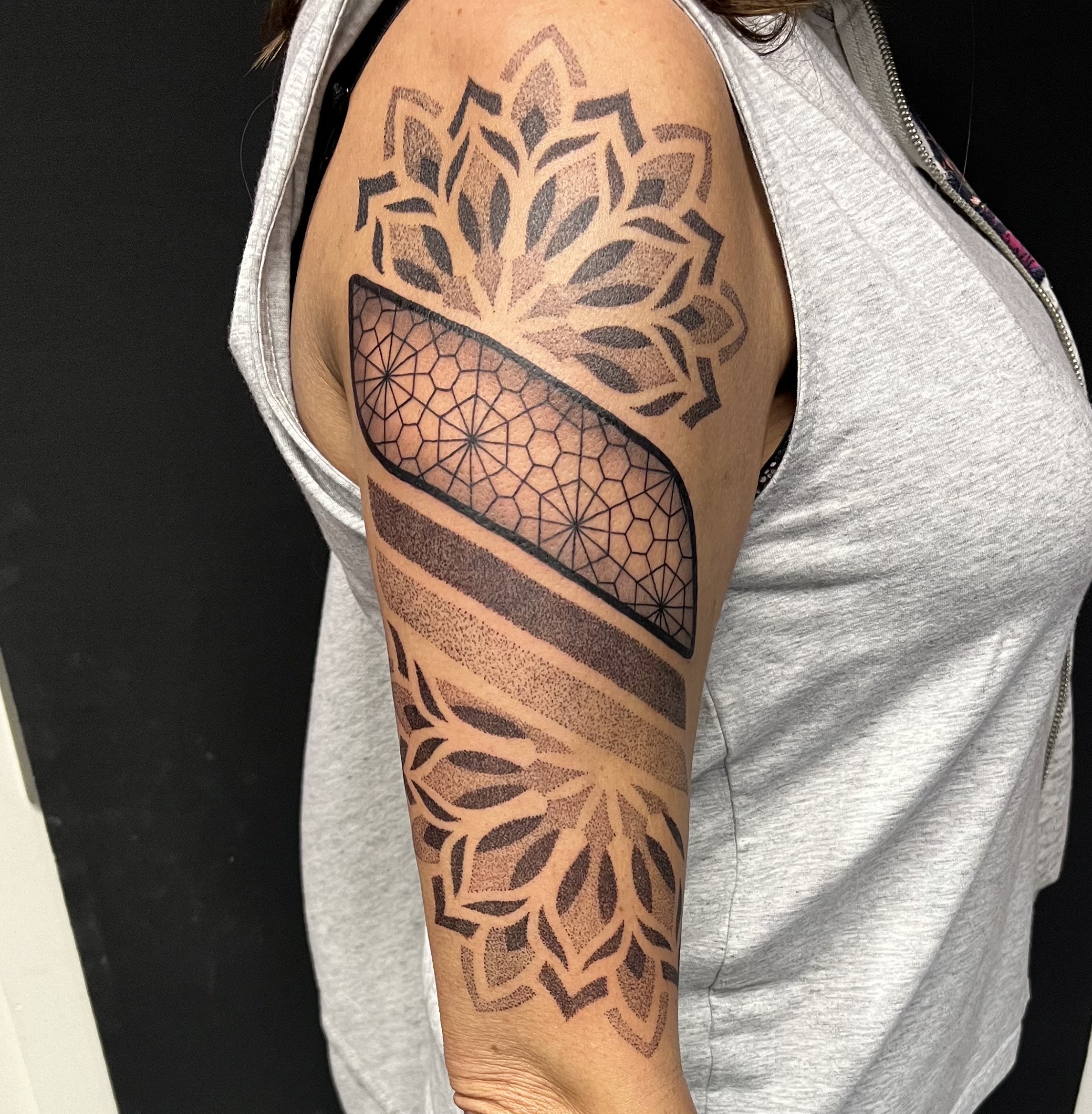 Ich arbeite seit 6 Jahren als Tattoo Artist. Spezialisiert habe ich mich auf Fineline, Dotwork(Mandalas), Geometrie und Abstrakt.