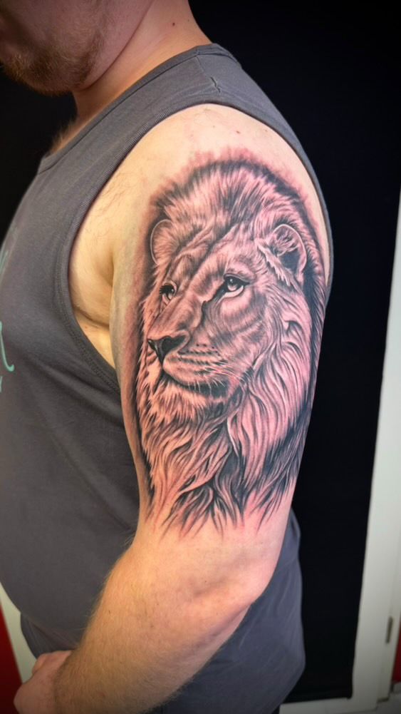 Zum Tätowieren bin ich durch befreundete Tätowierer gekommen. Da ich mir früher schon selbst die Beine und Arme ständig mit Stiften bemalt habe und viel gezeichnet habe, meinten sie ich solle es doch mal probieren und daraus ist eine Leidenschaft entstanden die jeden Tag stärker wird 🙂